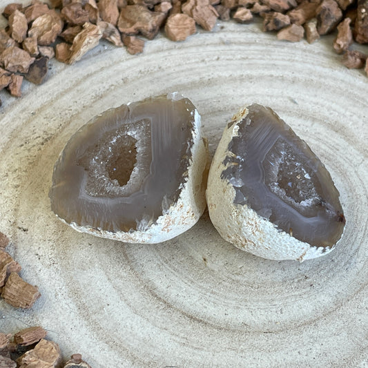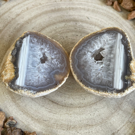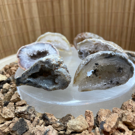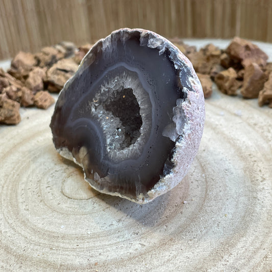 Agaat geode hanger met zwarte Toermalijn verzilverd