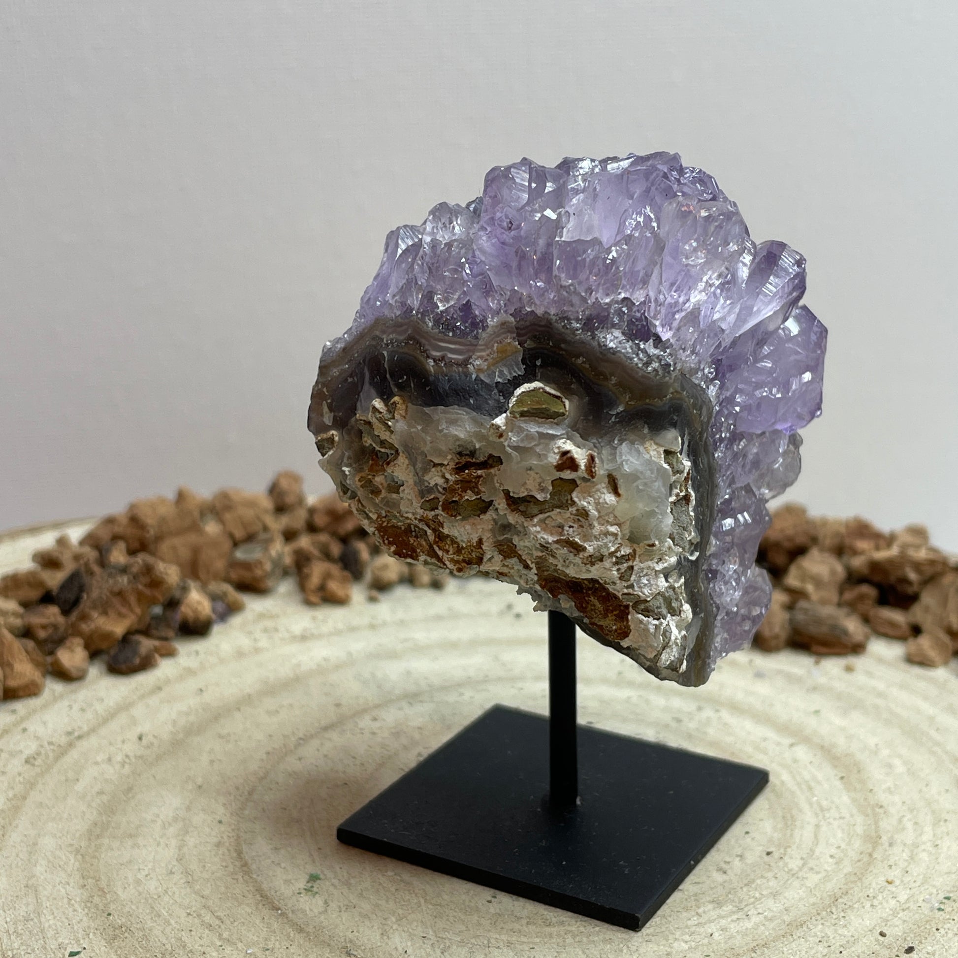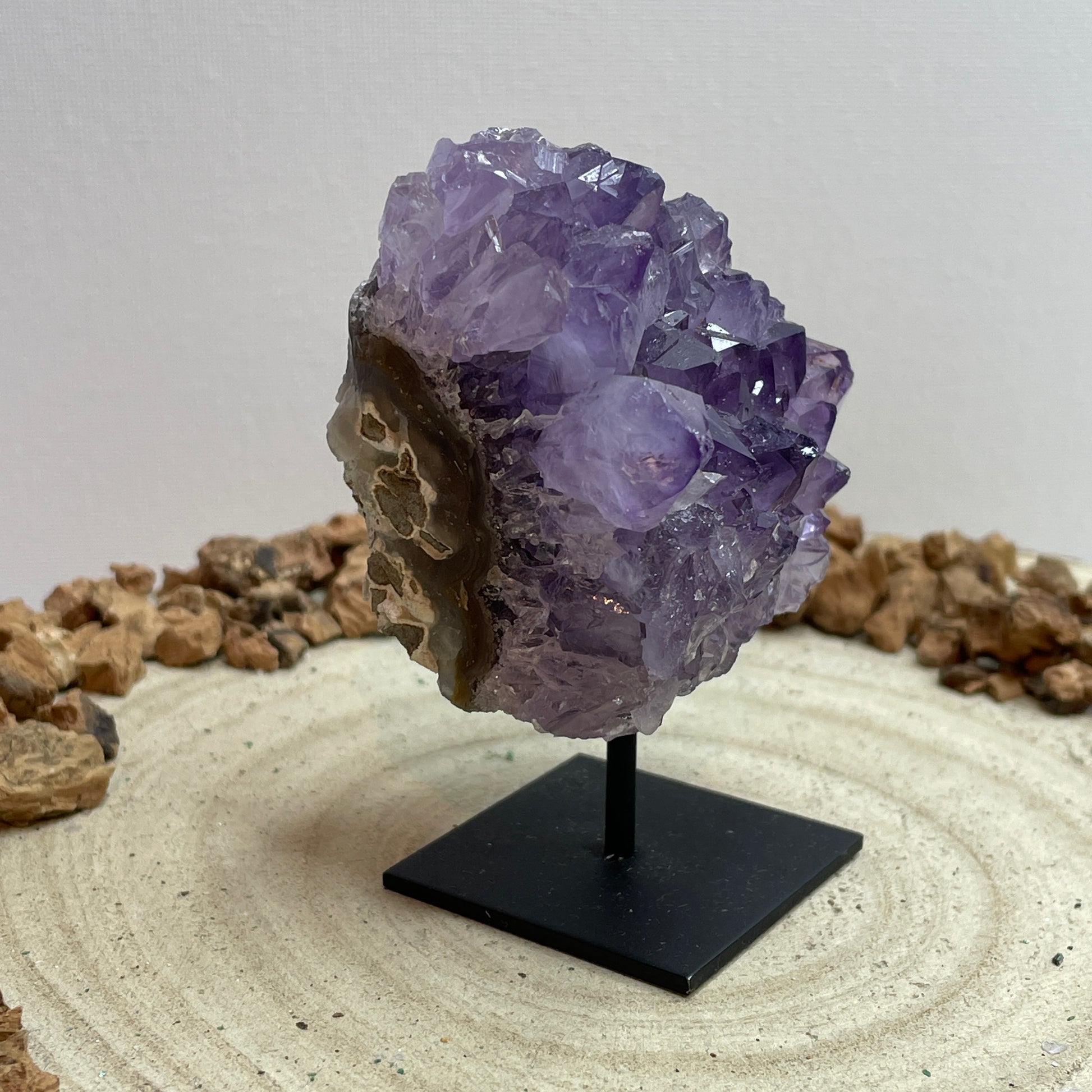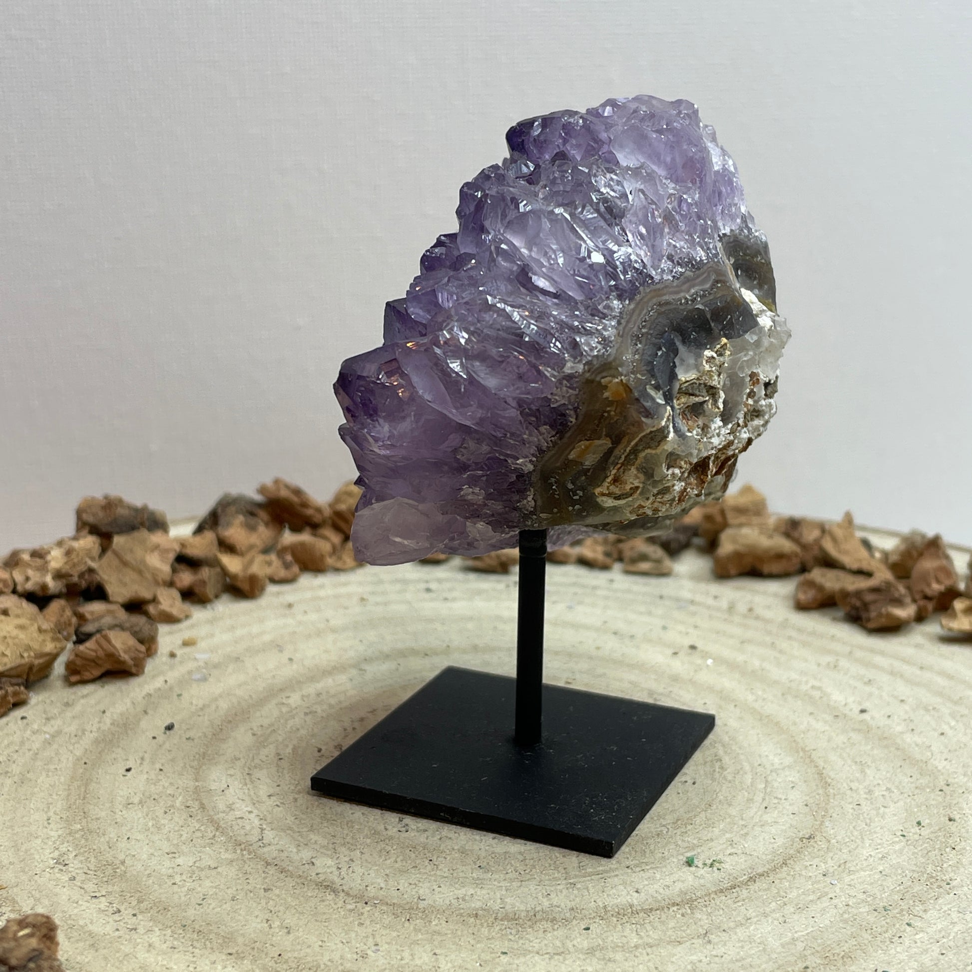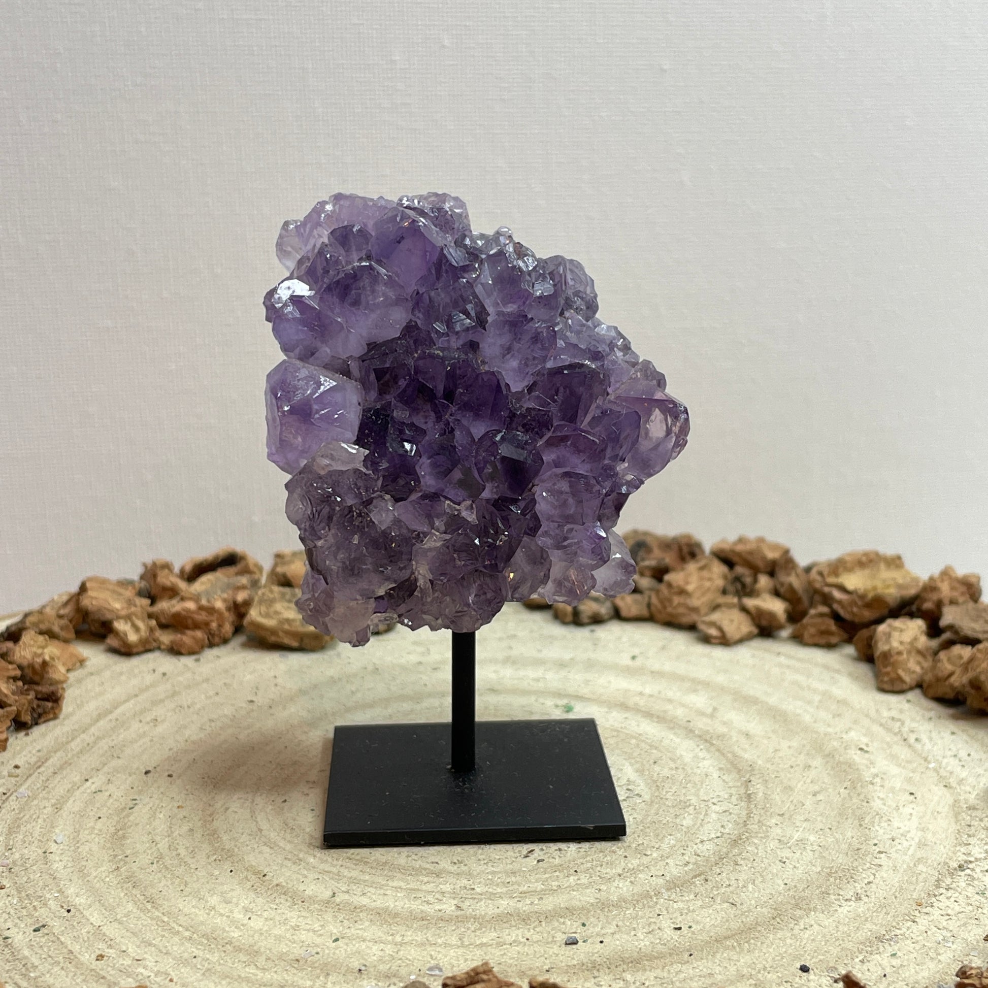 Amethist werkt zuiverend en helpt negatieve energie om te zetten in iets positiefs. Ze ondersteunt bij stress, overprikkeling en slapeloosheid, en kan troost geven in tijden van verdriet. Ook versterkt ze je intuïtie en is het een fijne steen om bij je te hebben tijdens meditatie of momenten van bezinning.