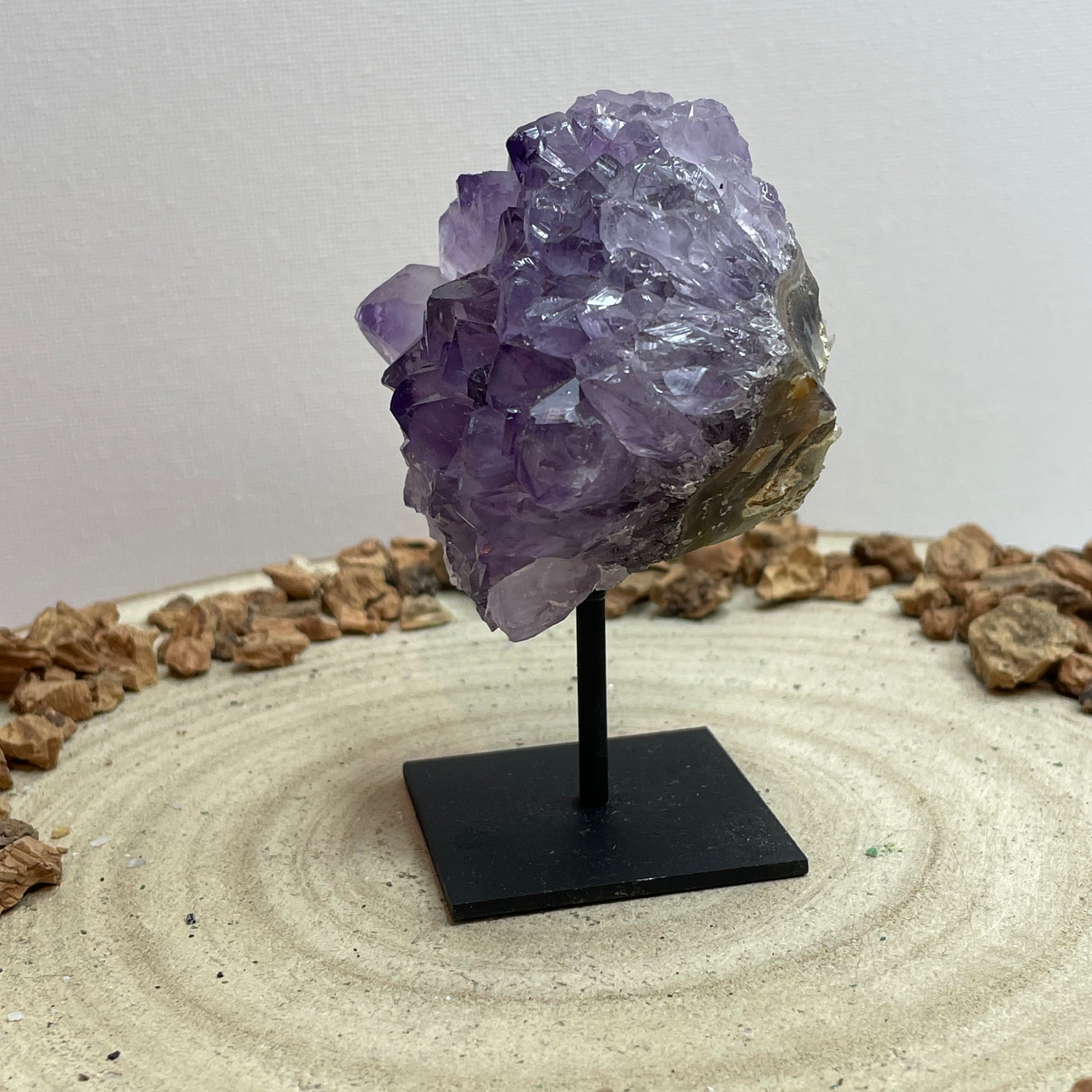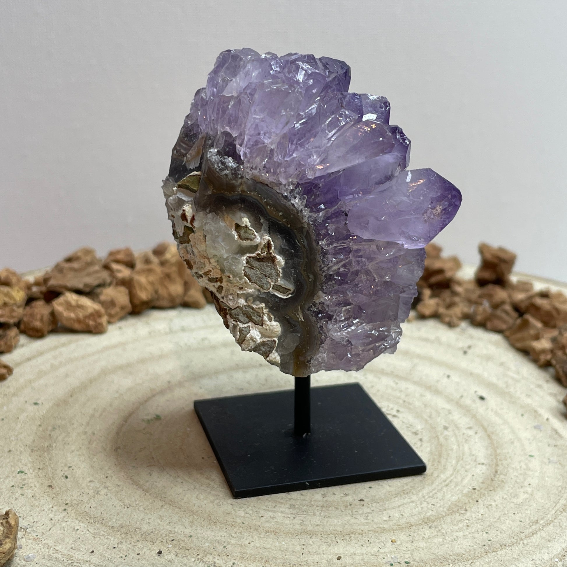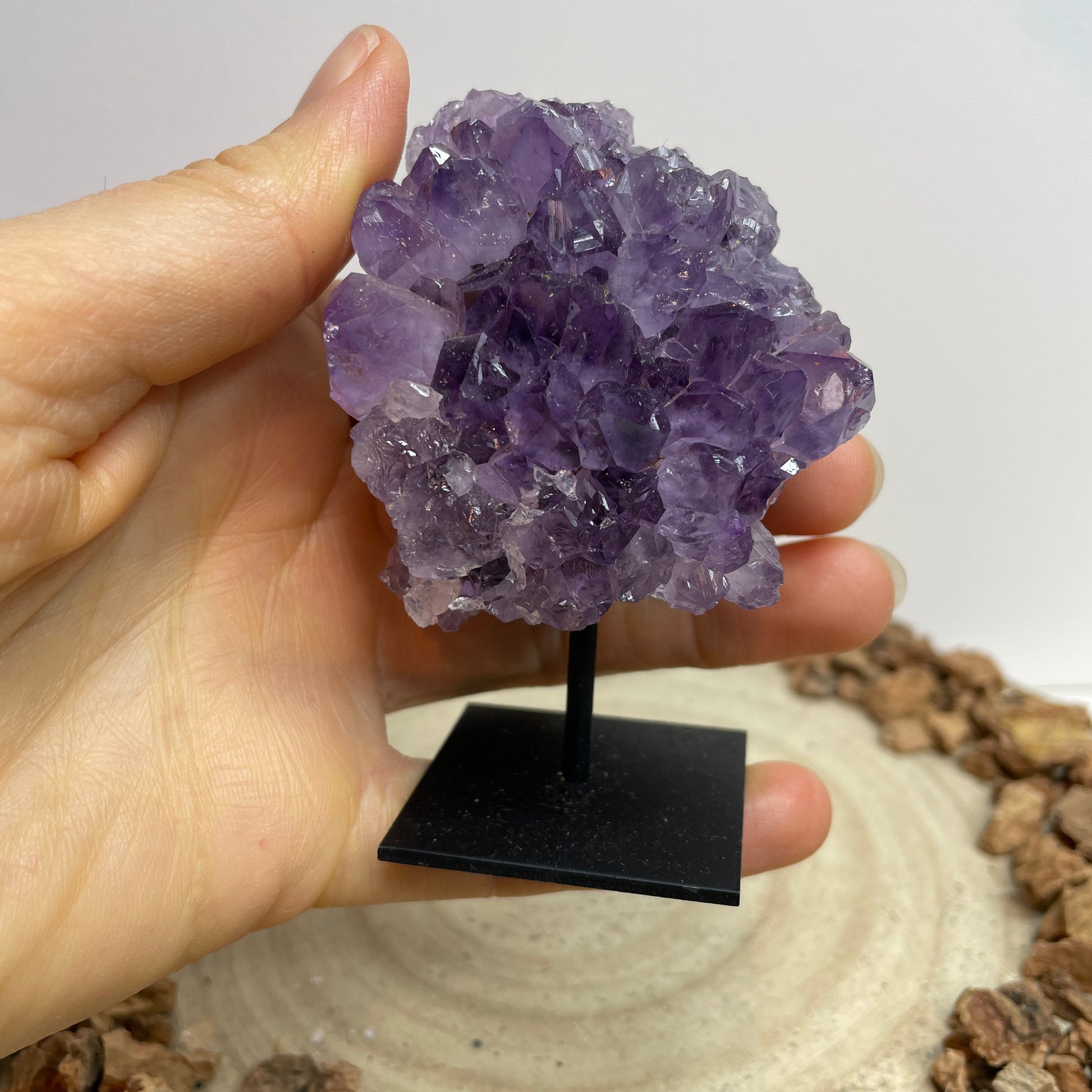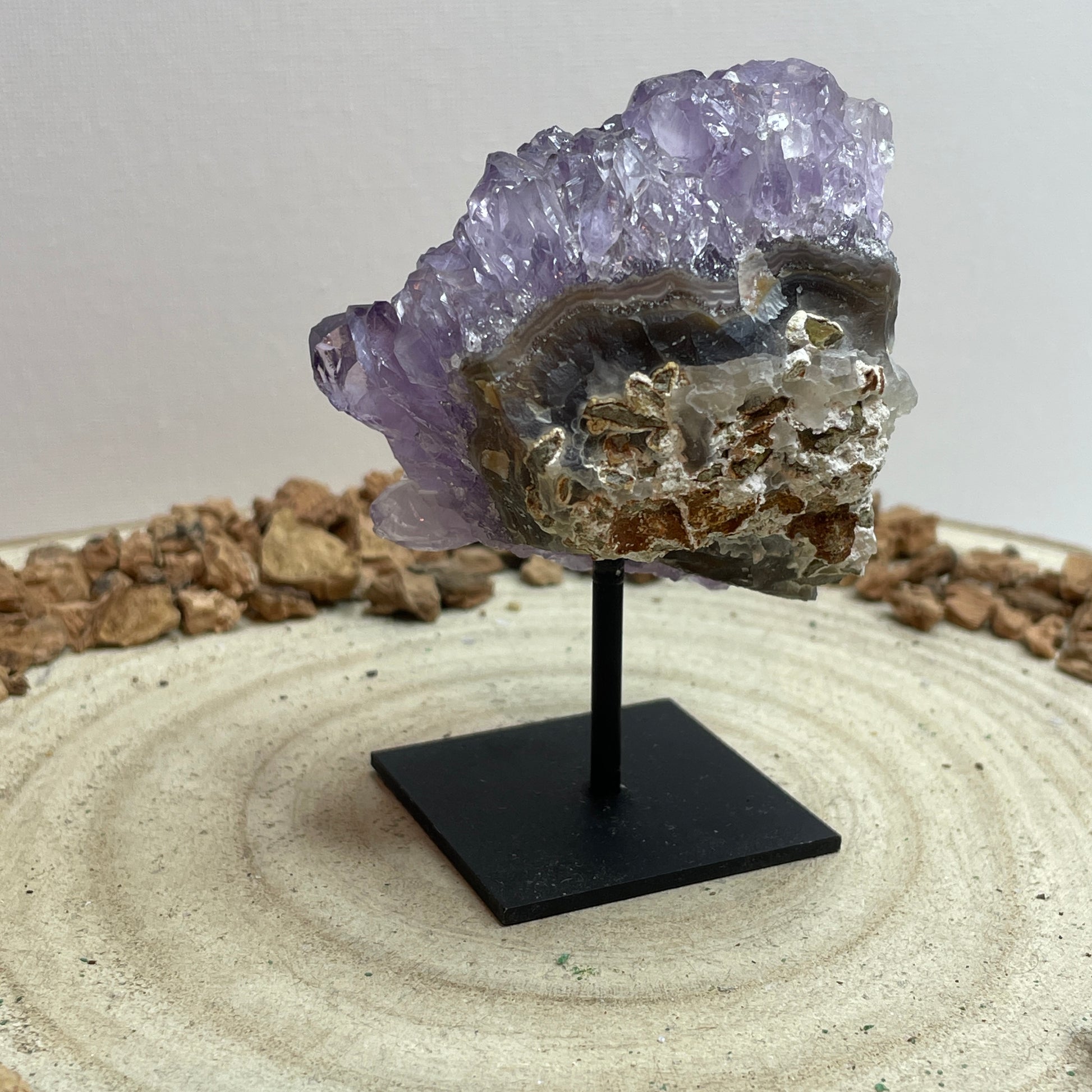 Amethist werkt zuiverend en helpt negatieve energie om te zetten in iets positiefs. Ze ondersteunt bij stress, overprikkeling en slapeloosheid, en kan troost geven in tijden van verdriet. Ook versterkt ze je intuïtie en is het een fijne steen om bij je te hebben tijdens meditatie of momenten van bezinning.