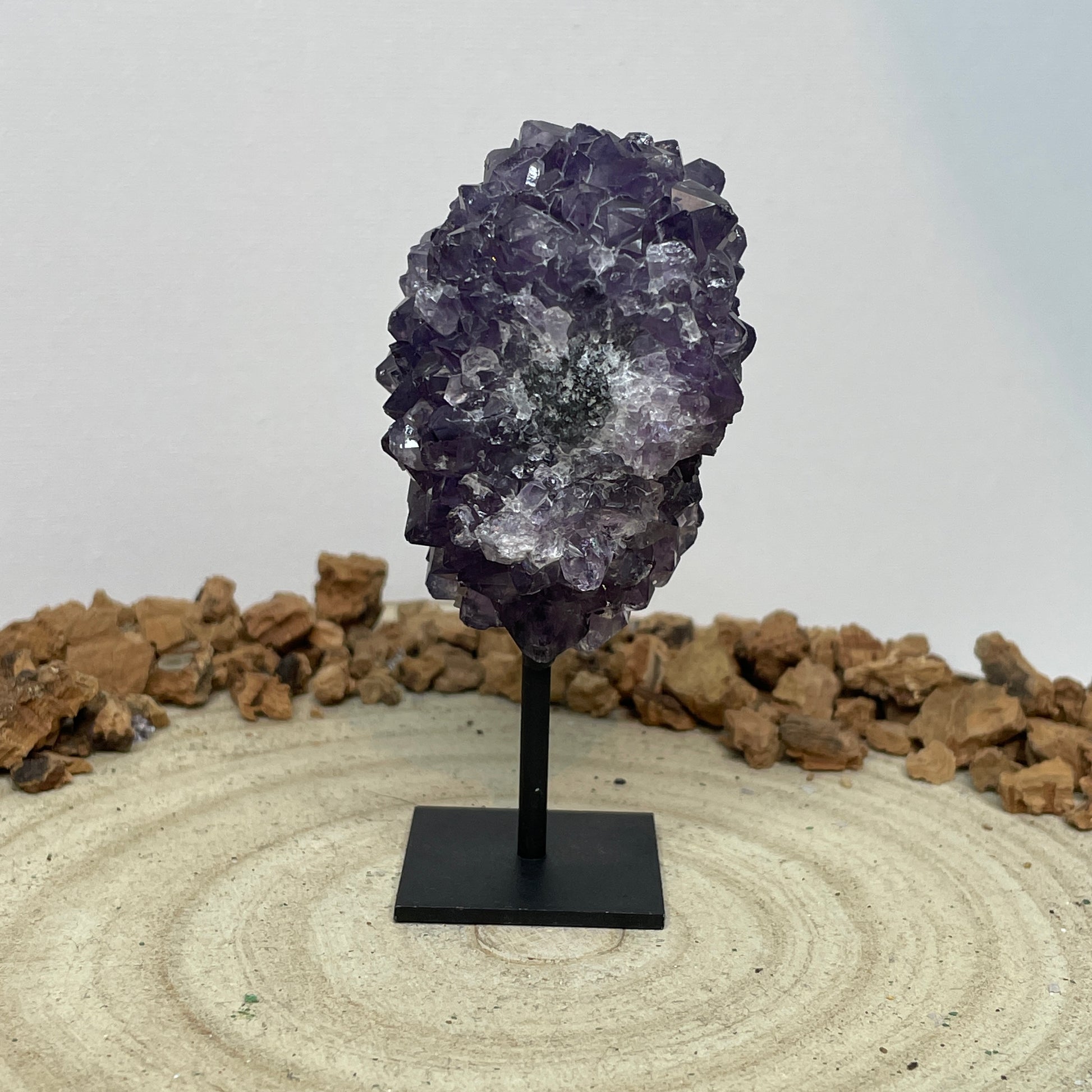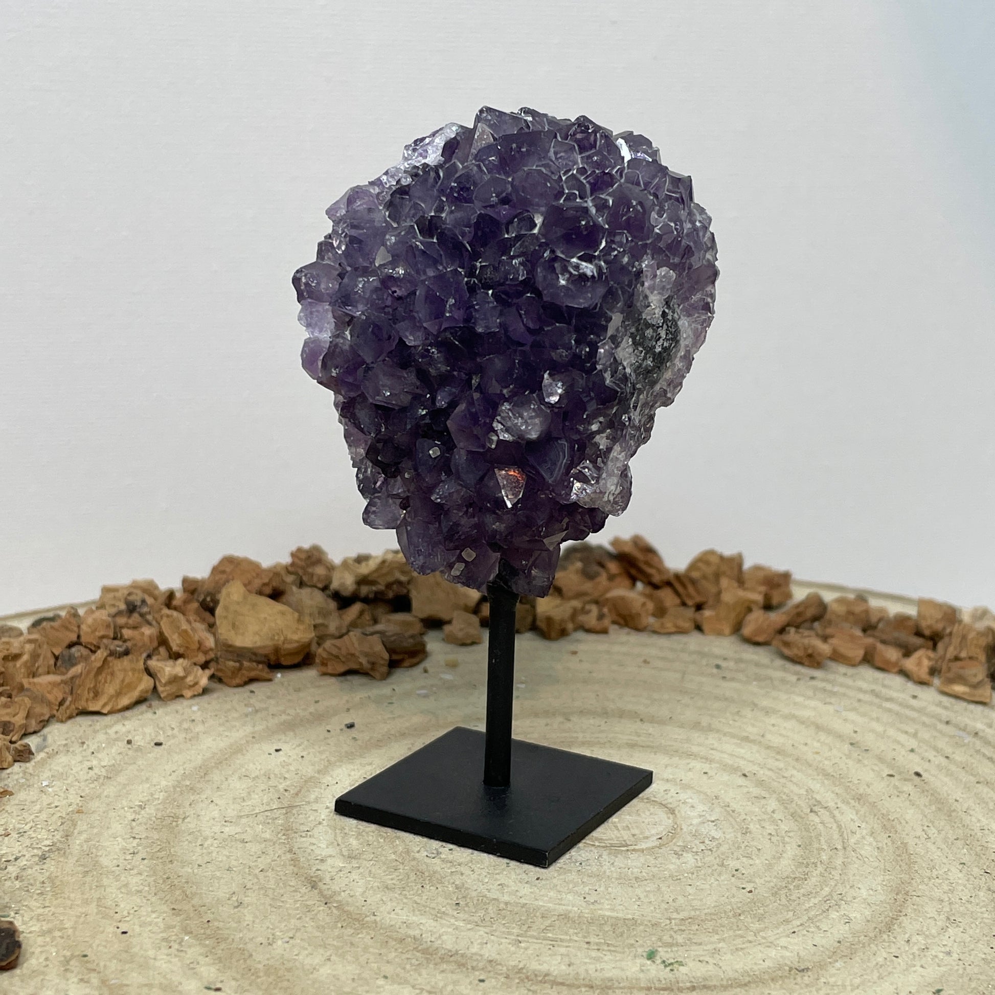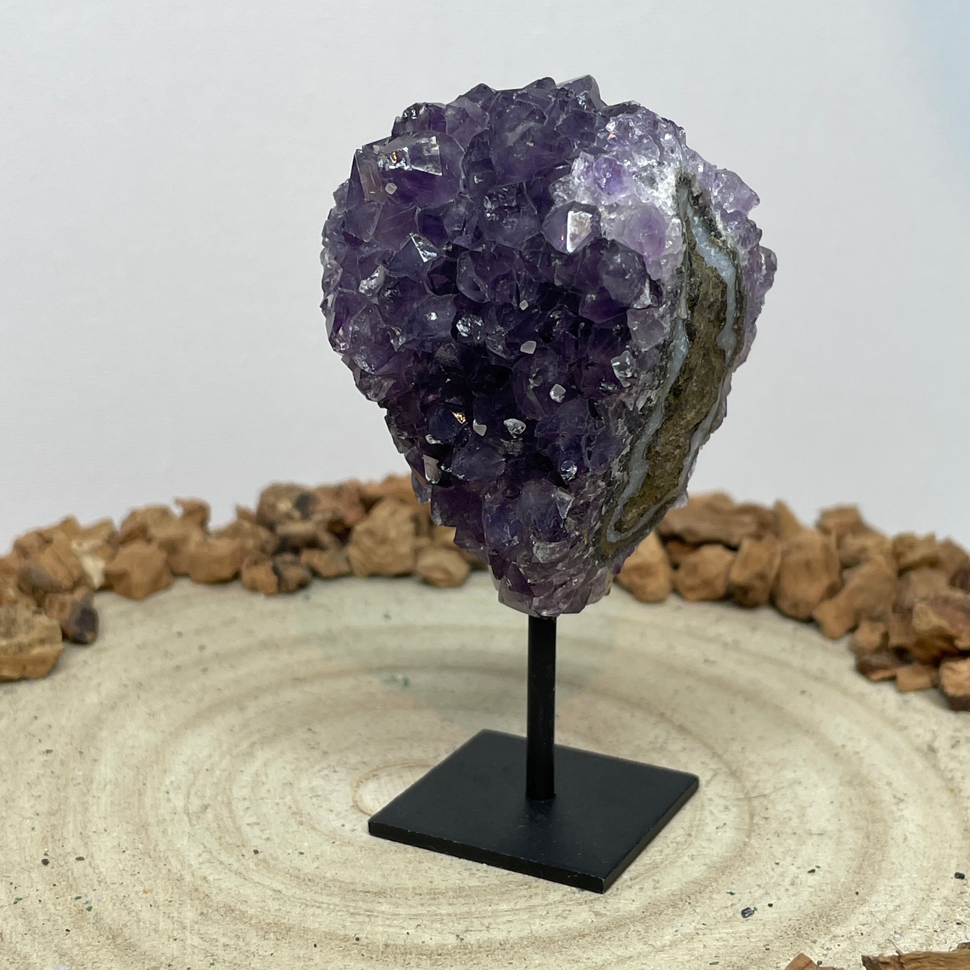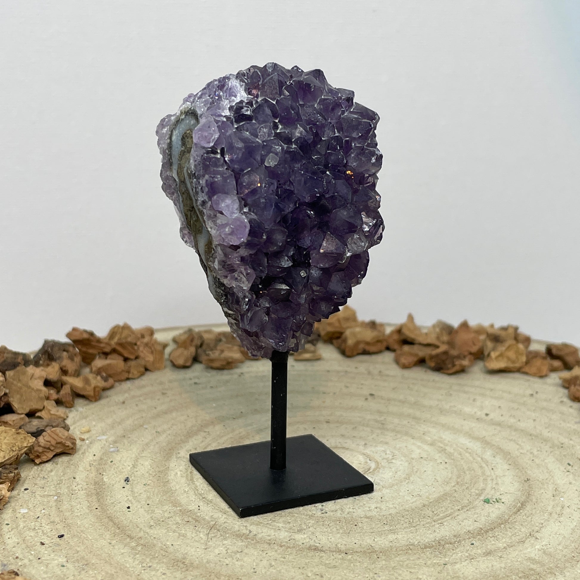 Amethist werkt zuiverend en helpt negatieve energie om te zetten in iets positiefs. Ze ondersteunt bij stress, overprikkeling en slapeloosheid, en kan troost geven in tijden van verdriet. Ook versterkt ze je intuïtie en is het een fijne steen om bij je te hebben tijdens meditatie of momenten van bezinning.