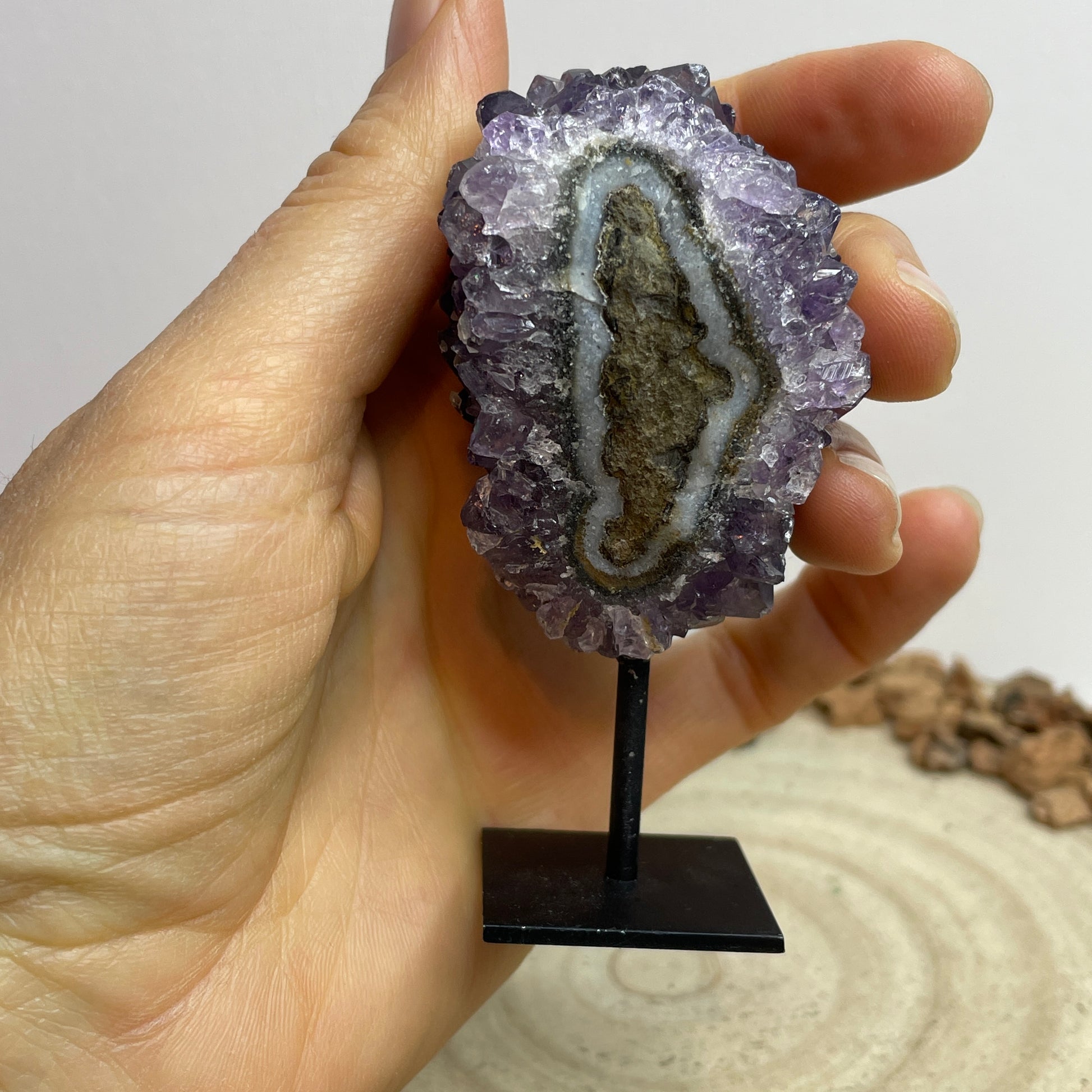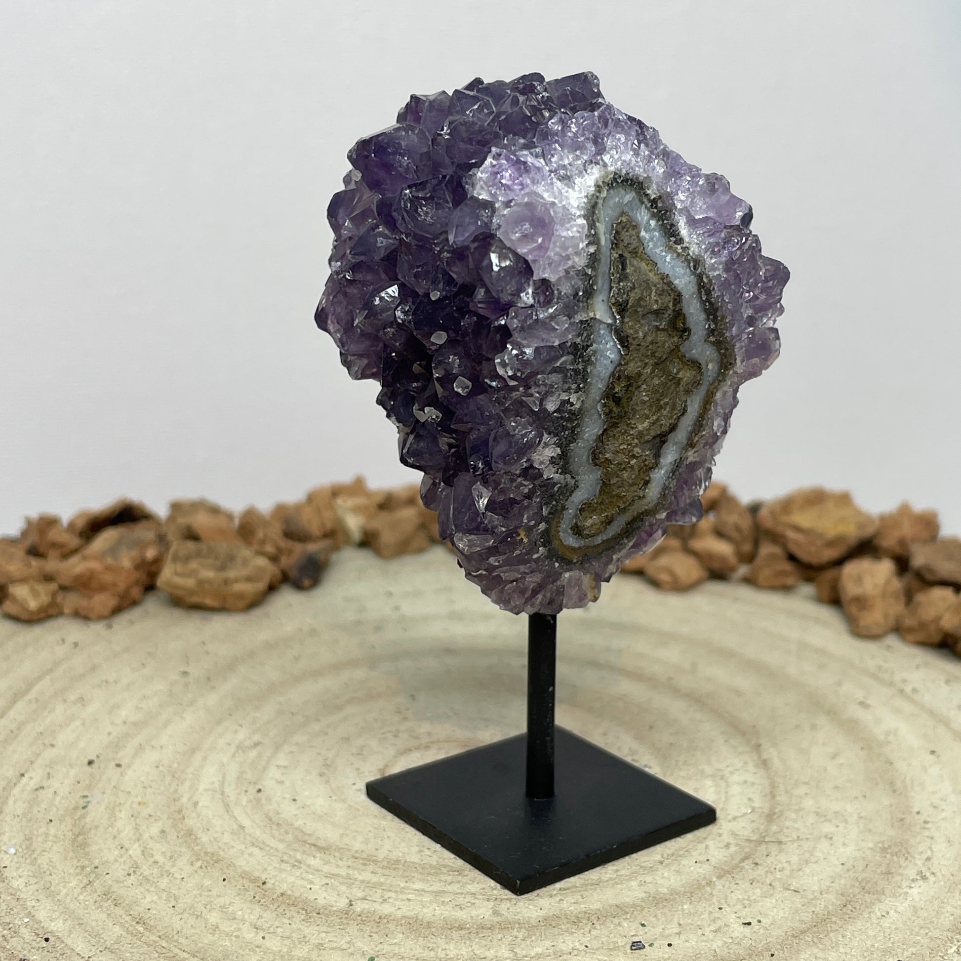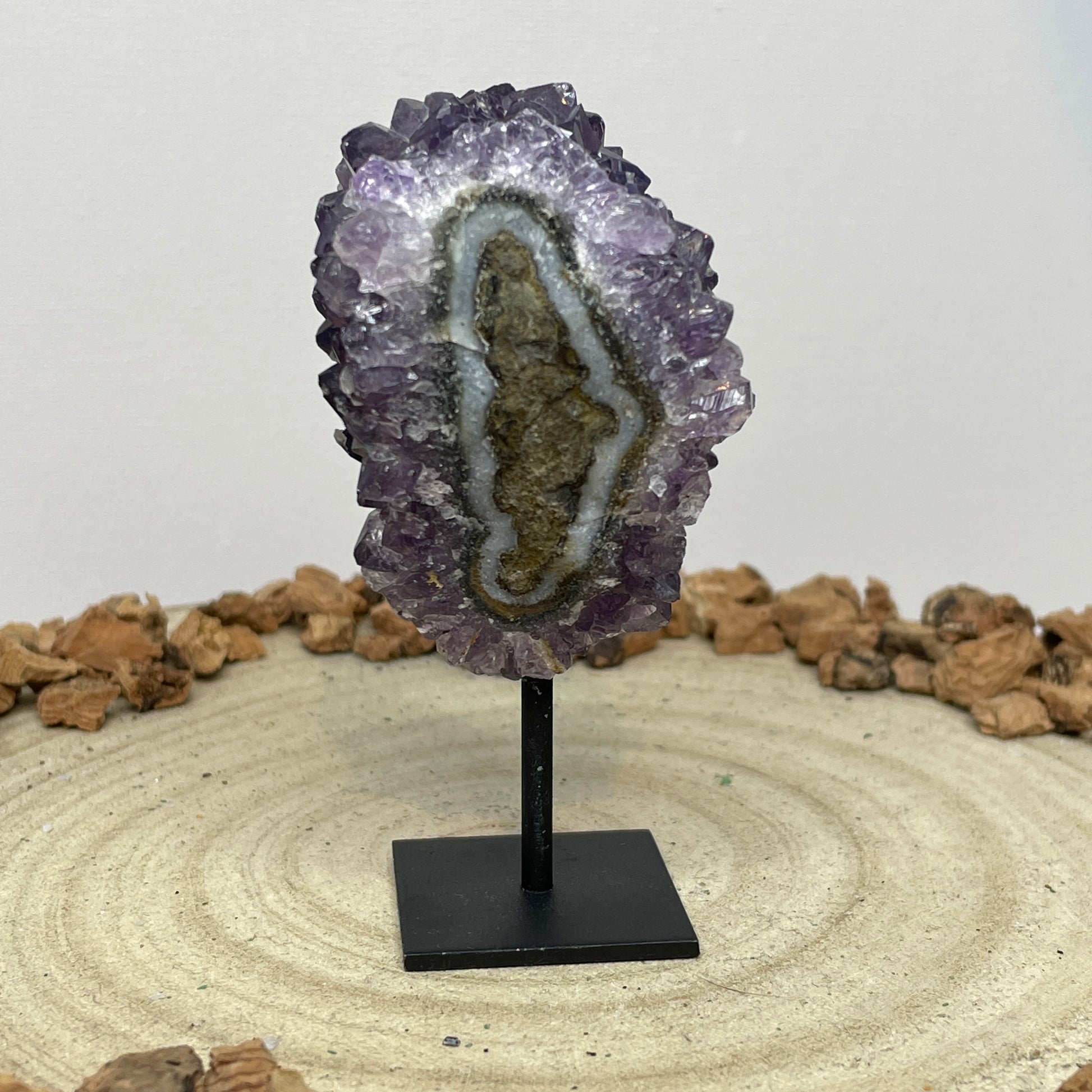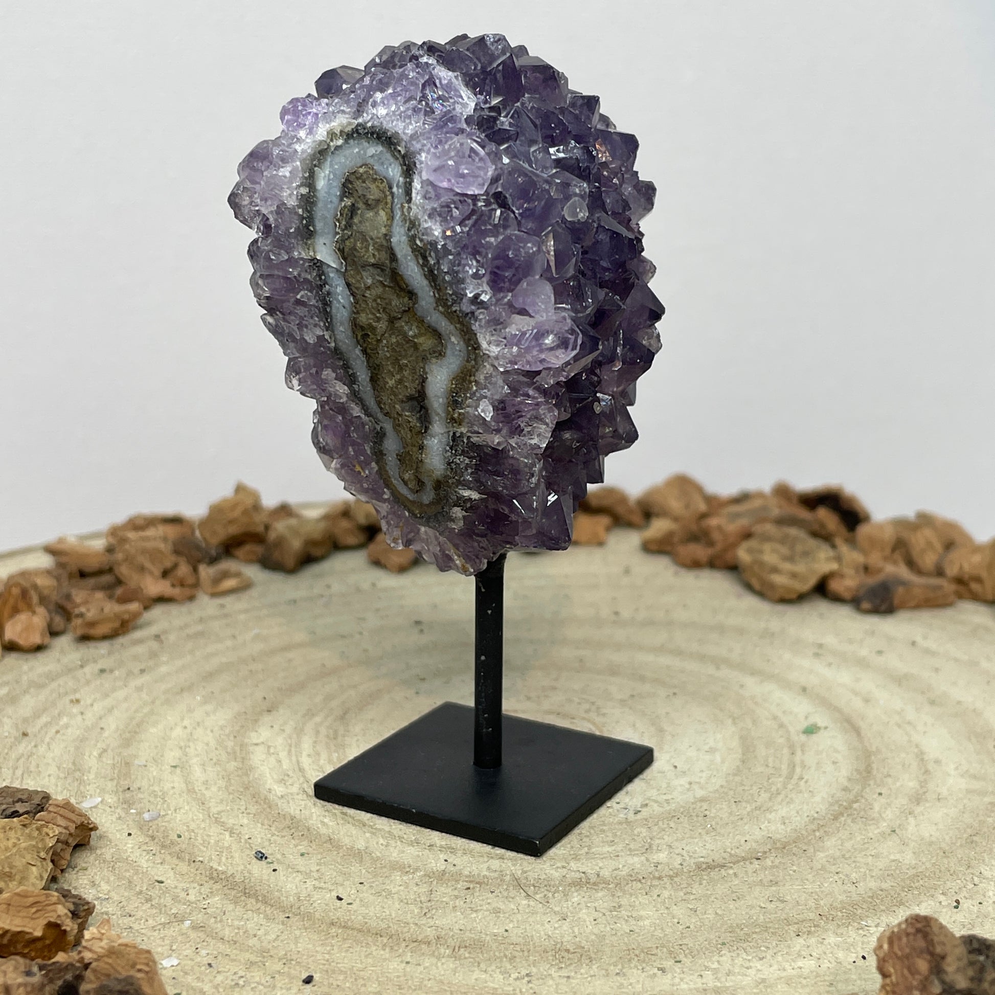 Amethist werkt zuiverend en helpt negatieve energie om te zetten in iets positiefs. Ze ondersteunt bij stress, overprikkeling en slapeloosheid, en kan troost geven in tijden van verdriet. Ook versterkt ze je intuïtie en is het een fijne steen om bij je te hebben tijdens meditatie of momenten van bezinning.