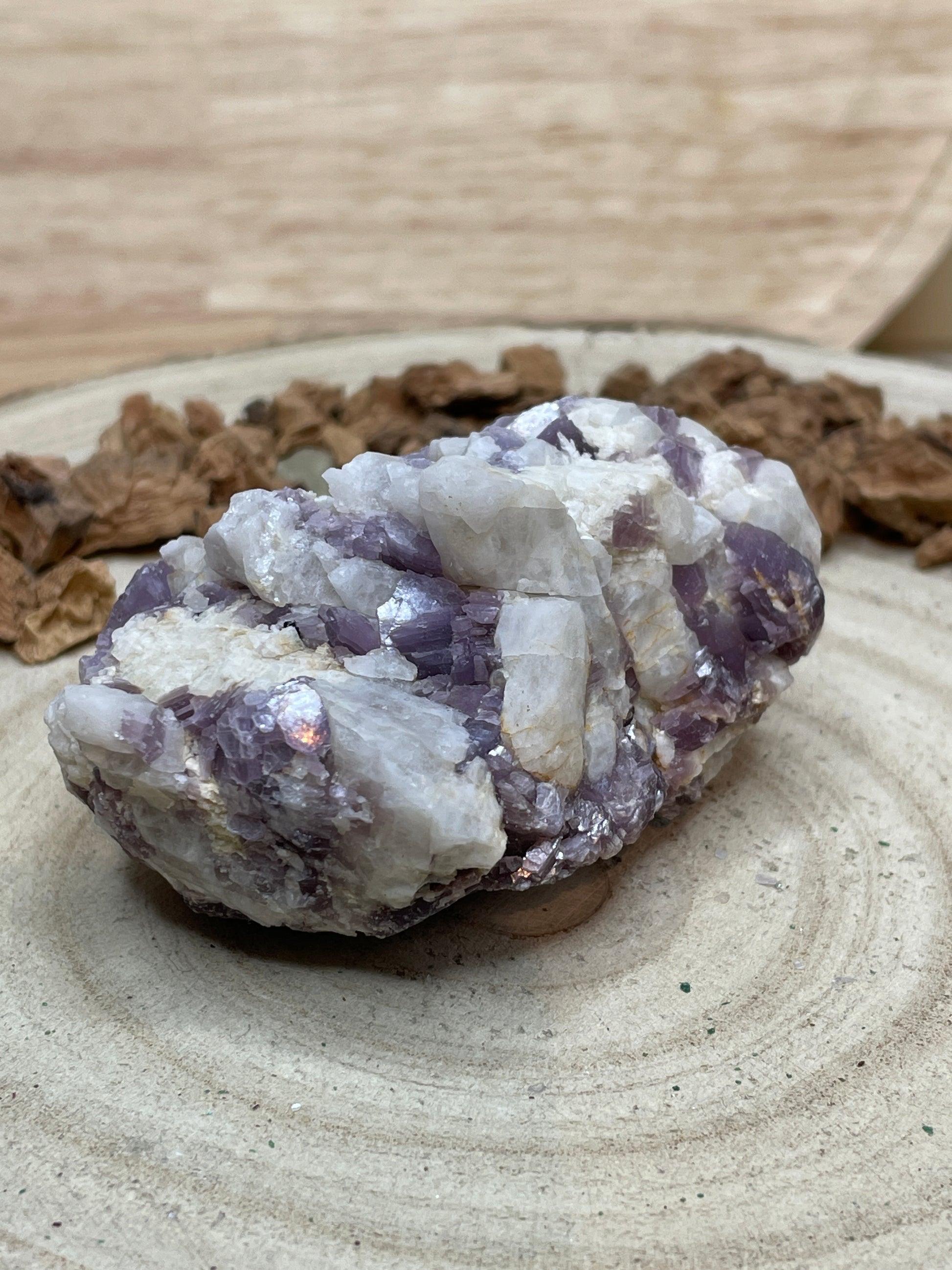 Lepidoliet brengt rust in je gedachten en helpt stress, spanning en overweldigende emoties los te laten. Deze steen ondersteunt innerlijke kalmte, helderheid en het vinden van evenwicht in drukke tijden. Een Lepidoliet cluster is perfect om in je leefruimte te plaatsen voor een constante bron van zachte, kalmerende energie.