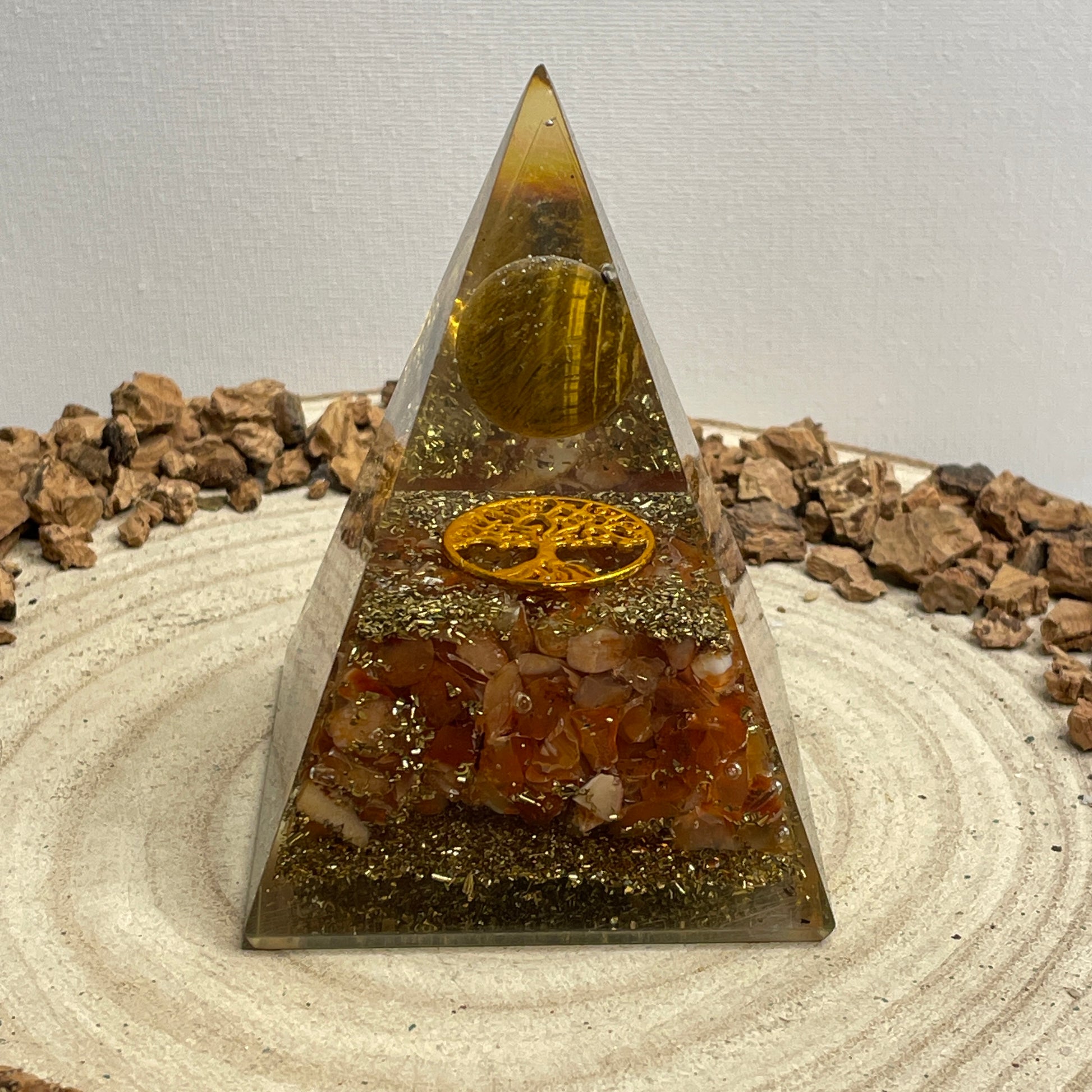 Deze orgonite piramide ademt kracht, vertrouwen en levensenergie. Tijgeroog helpt je om met beide voeten op de grond te staan, geeft moed en laat je je innerlijke kracht voelen. Ze beschermt je energie en helpt je om met helderheid en focus keuzes te maken die echt bij jou passen.