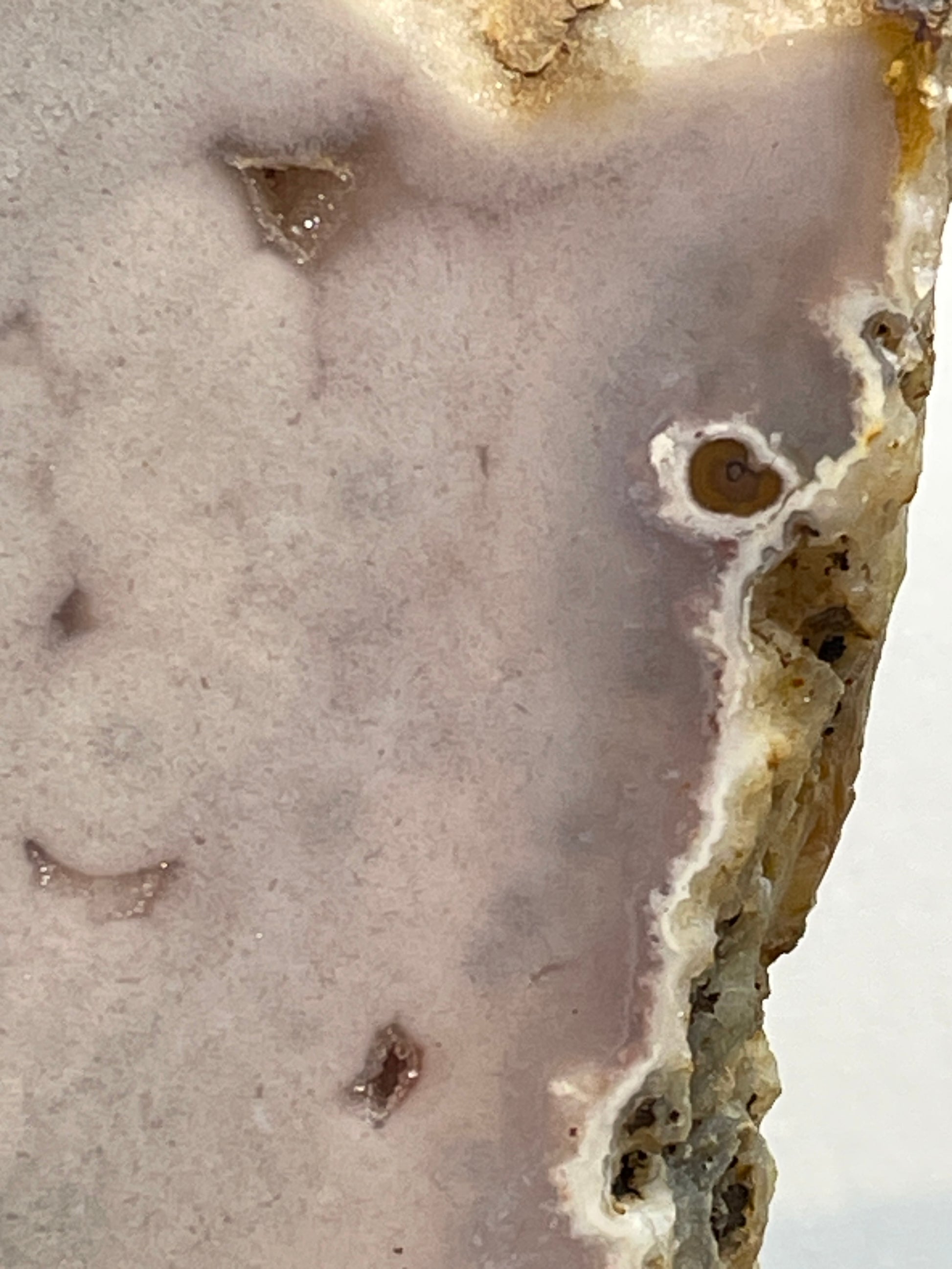 Dit is echt een prachtig statement piece. De combinatie van Roze Amethist met Bloemagaat maakt haar uniek en bijzonder om te zien. Ze is 29 cm hoog, 20 cm breed en weegt 1,75 kilo, een flinke steen die meteen opvalt in de ruimte.