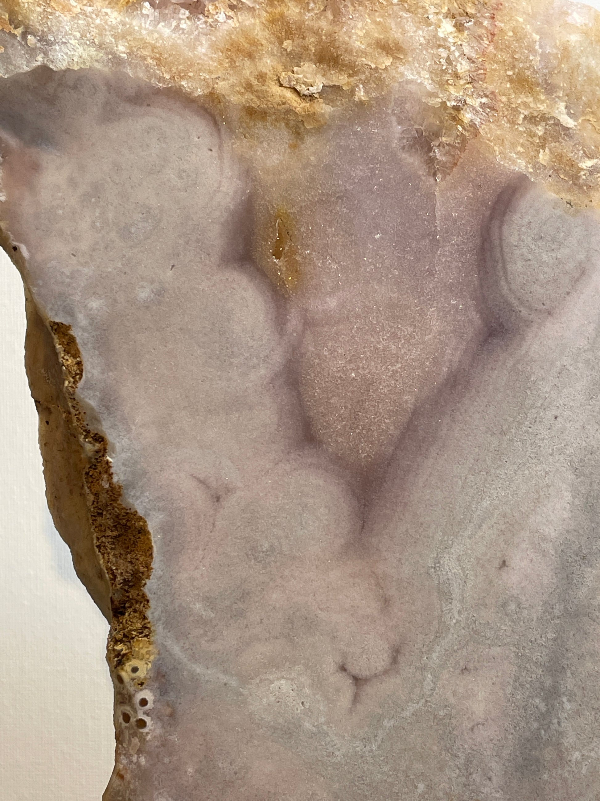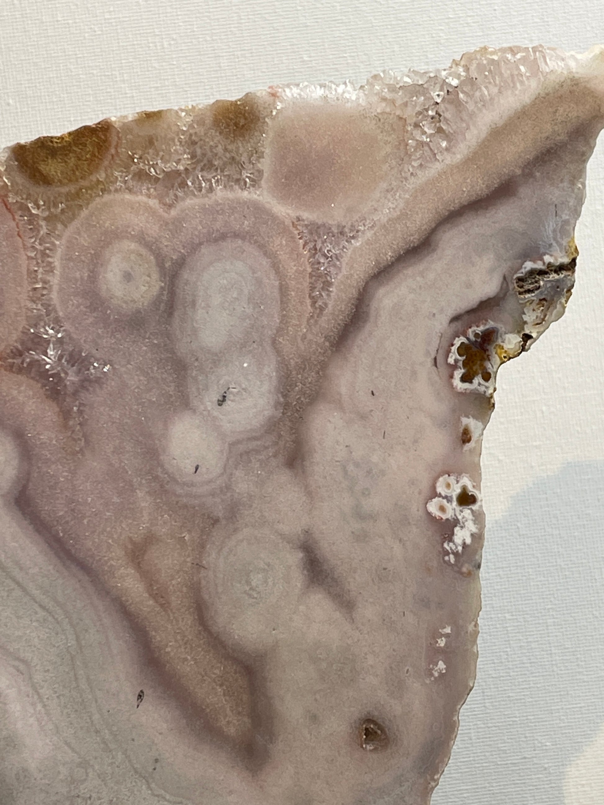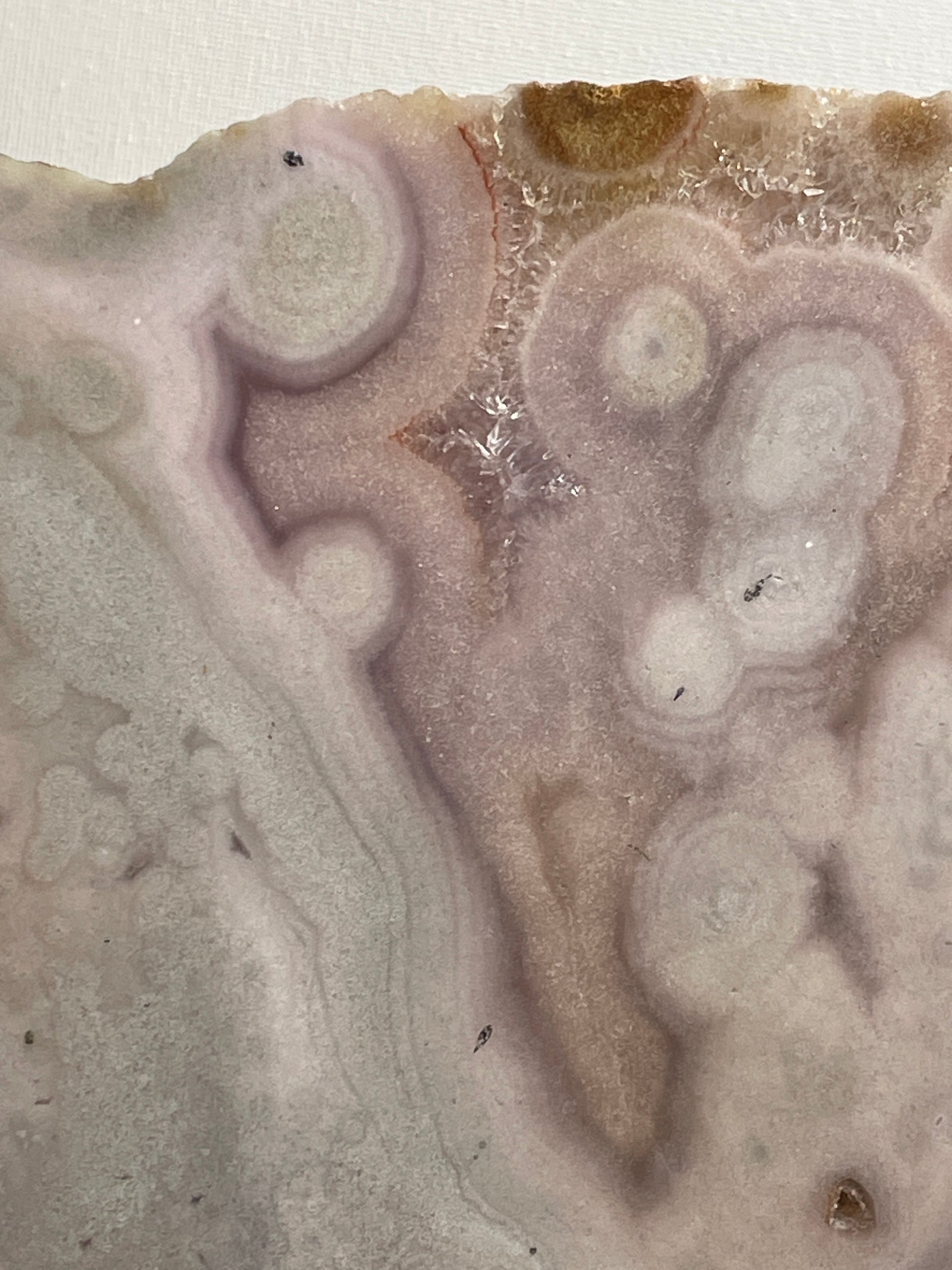 Roze Amethist straalt rust, zachtheid en liefdevolle energie uit. Ze brengt een fijne, kalme sfeer in huis of werkplek en helpt om spanning los te laten. De Bloemagaat voegt daar iets aards en verzorgends aan toe, waardoor er een mooie balans ontstaat tussen hart en gronding.