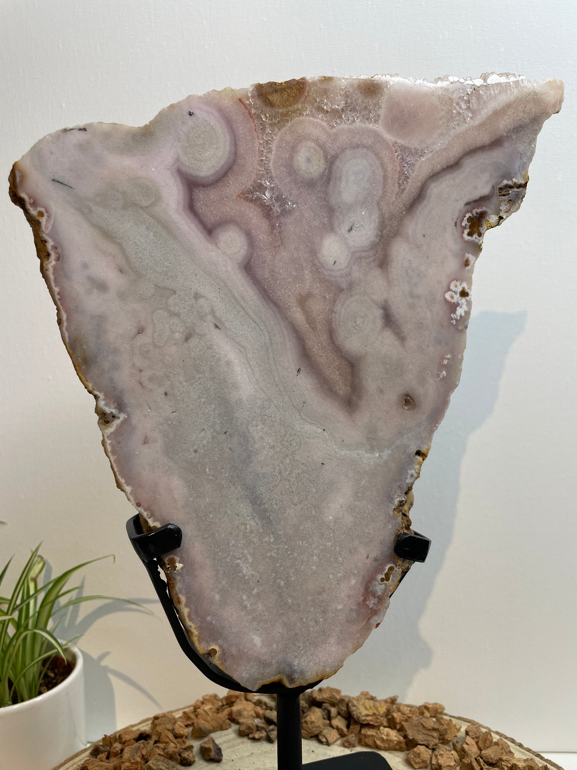 Roze Amethist op standaard met Bloemagaat