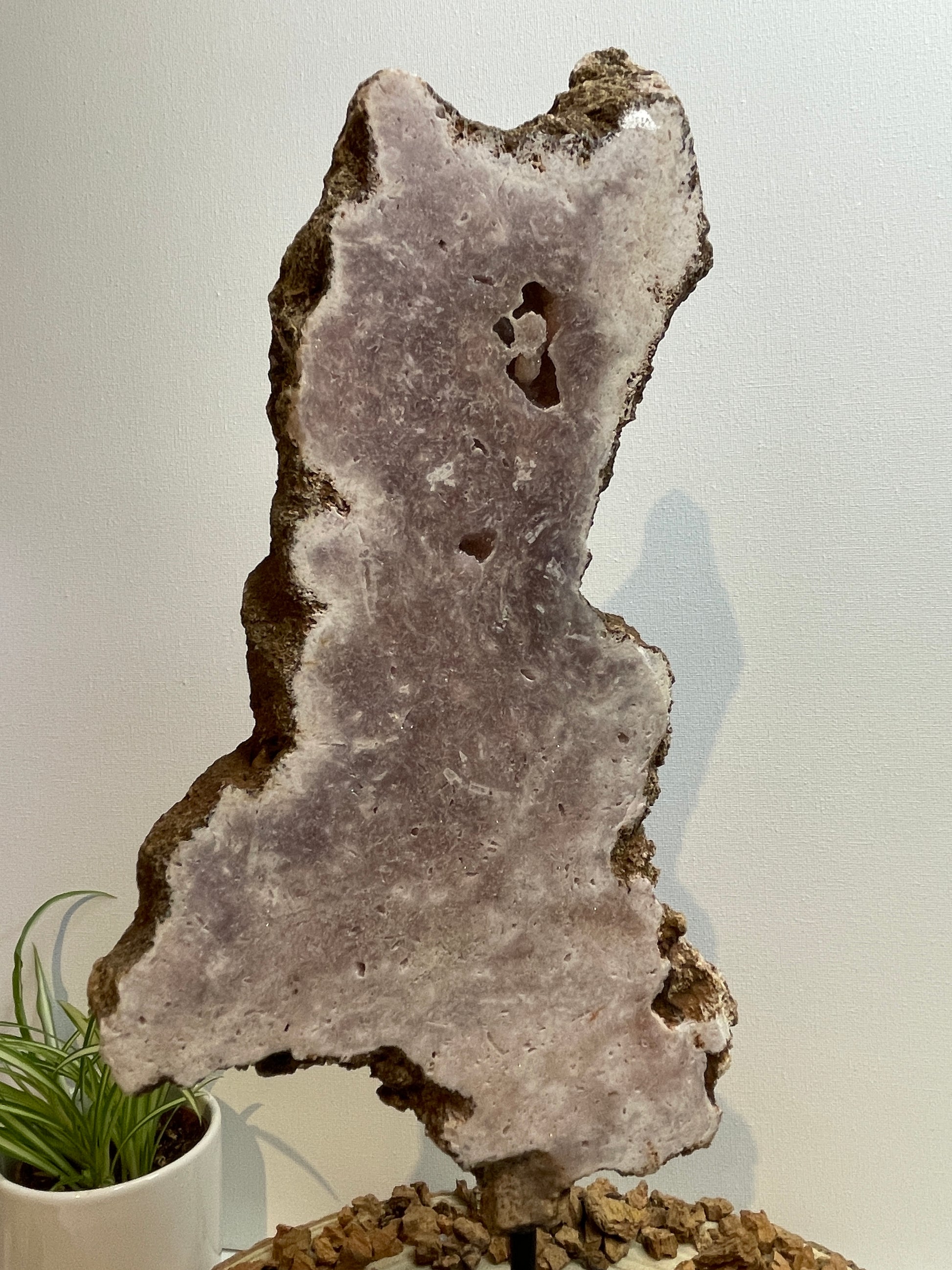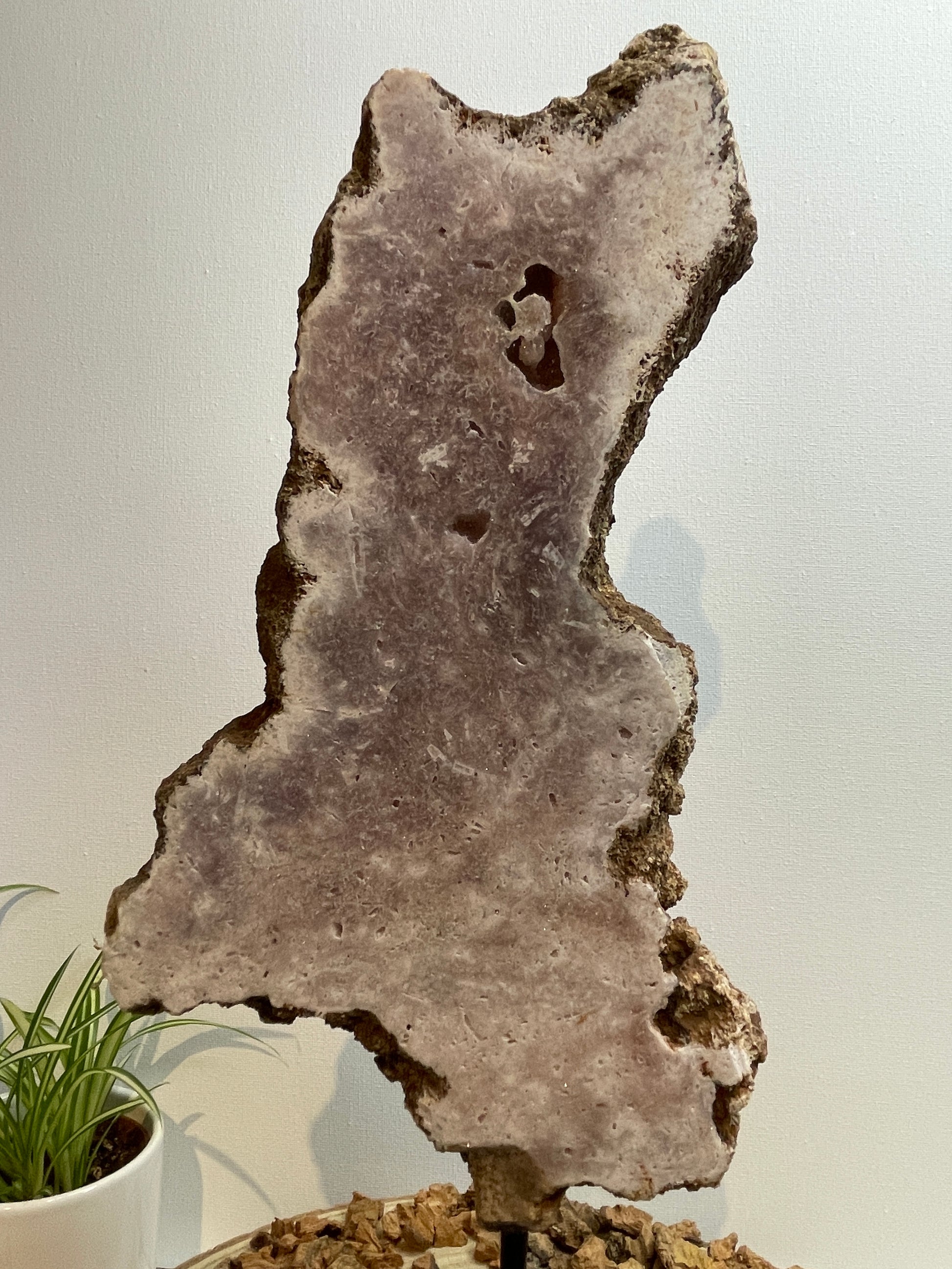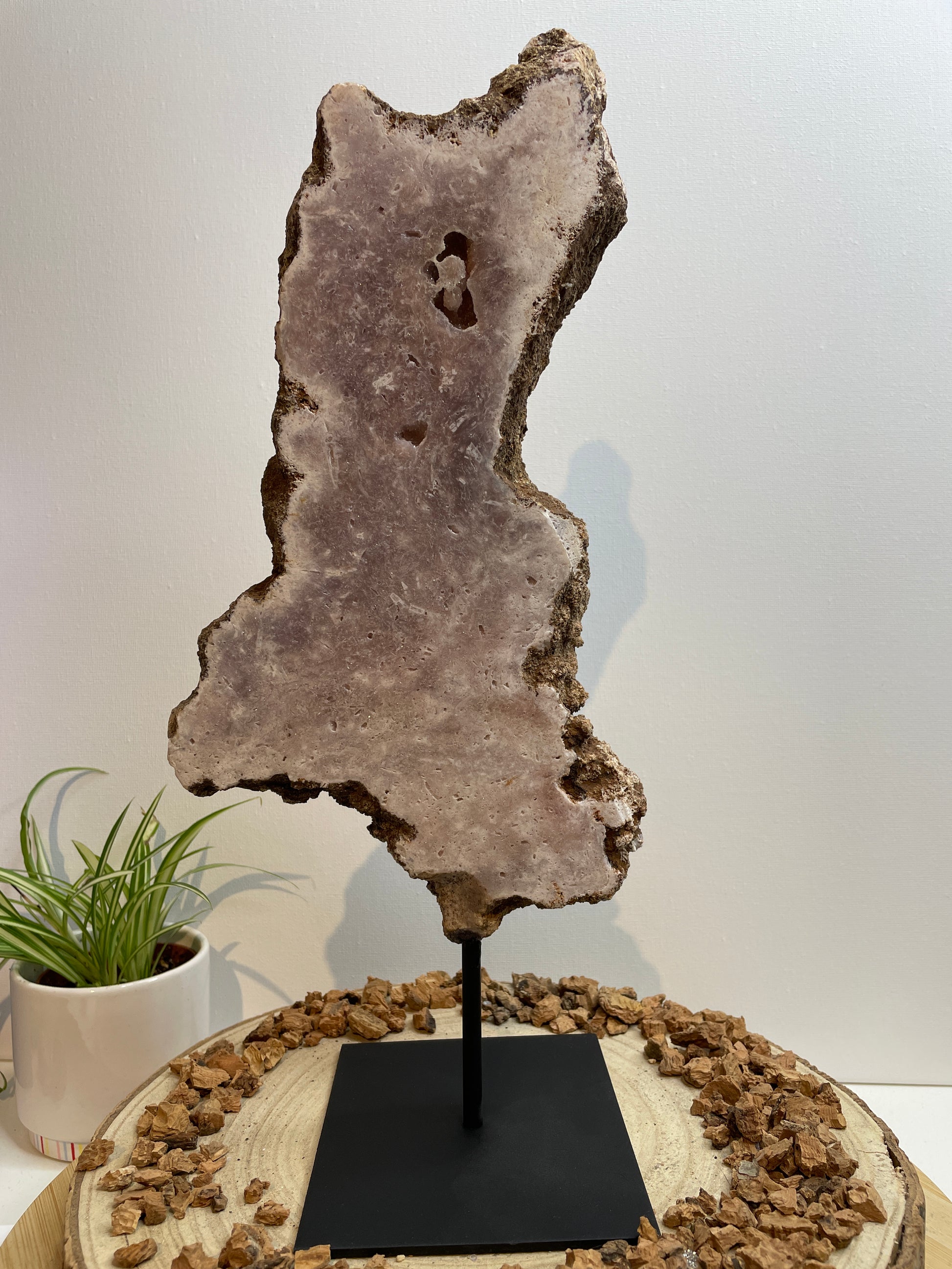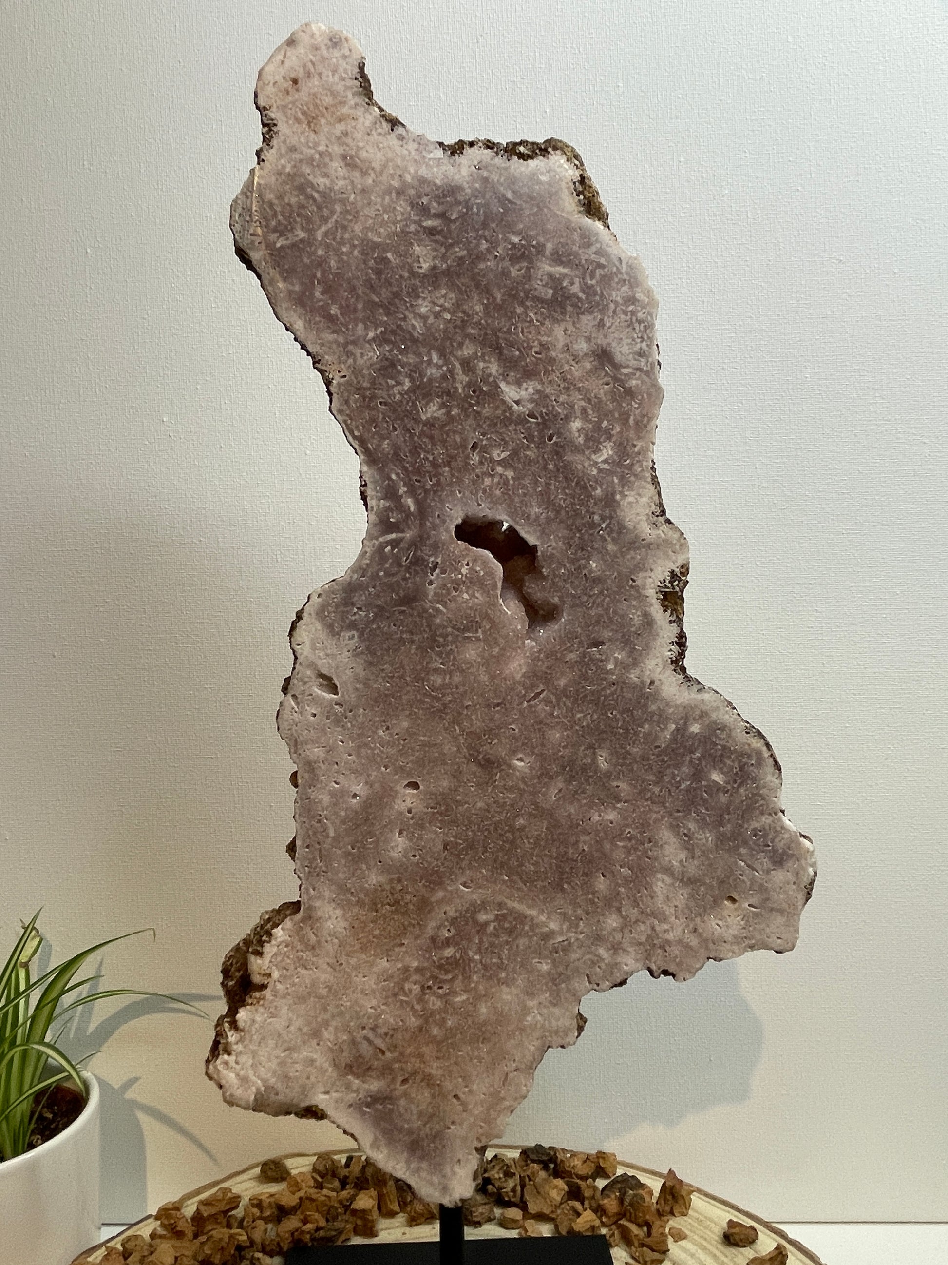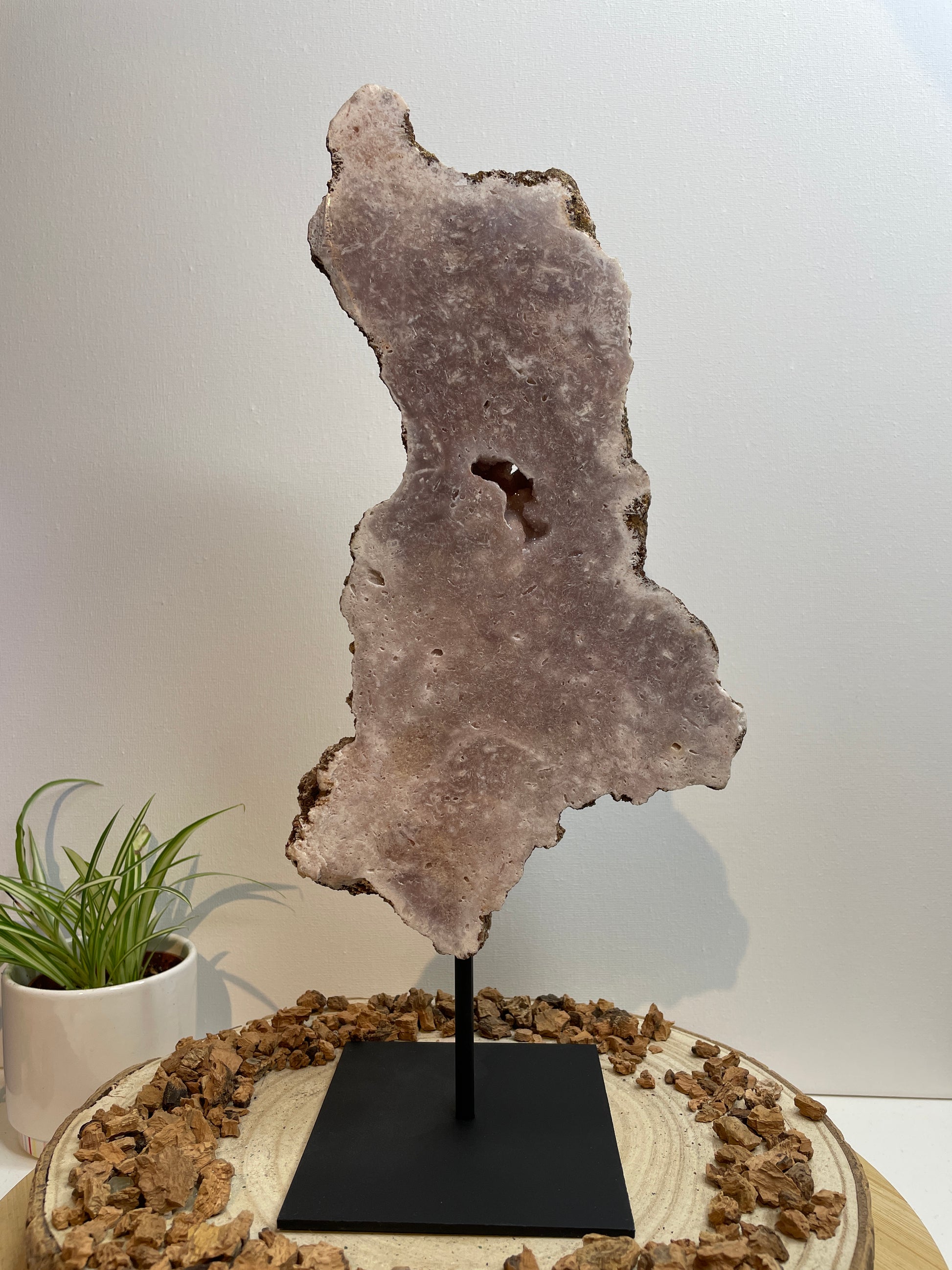 Een Roze Amethist op standaard brengt rust, zachtheid en harmonie in huis. Deze steen staat bekend om zijn liefdevolle uitstraling en helpt om een kalme sfeer te creëren in de ruimte. De zachte roze kleur nodigt uit tot ontspanning en een gevoel van vrede.