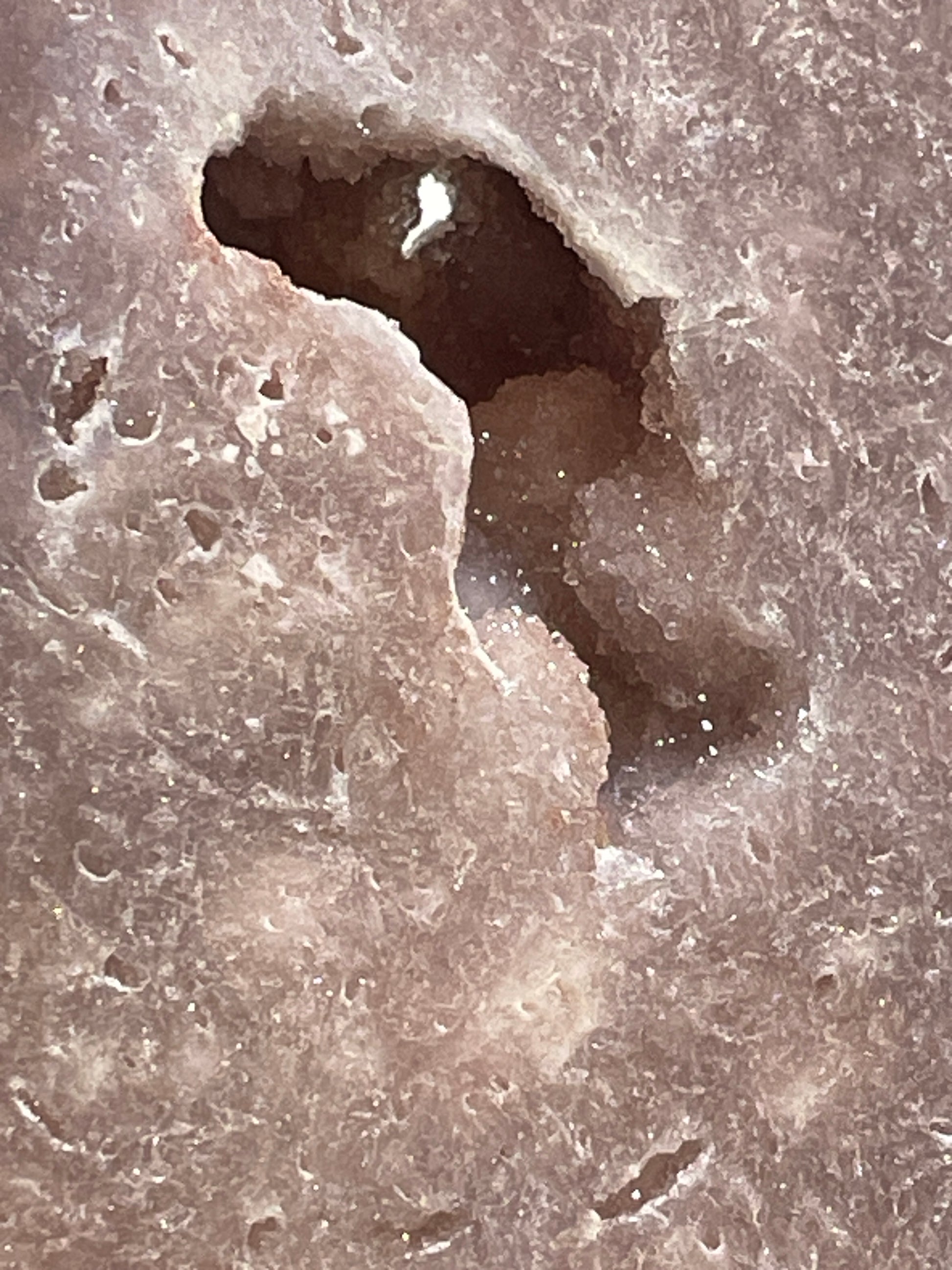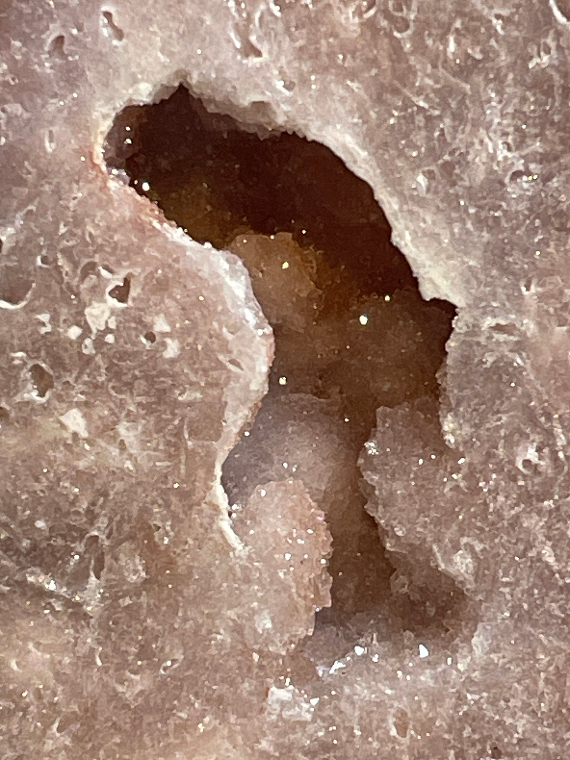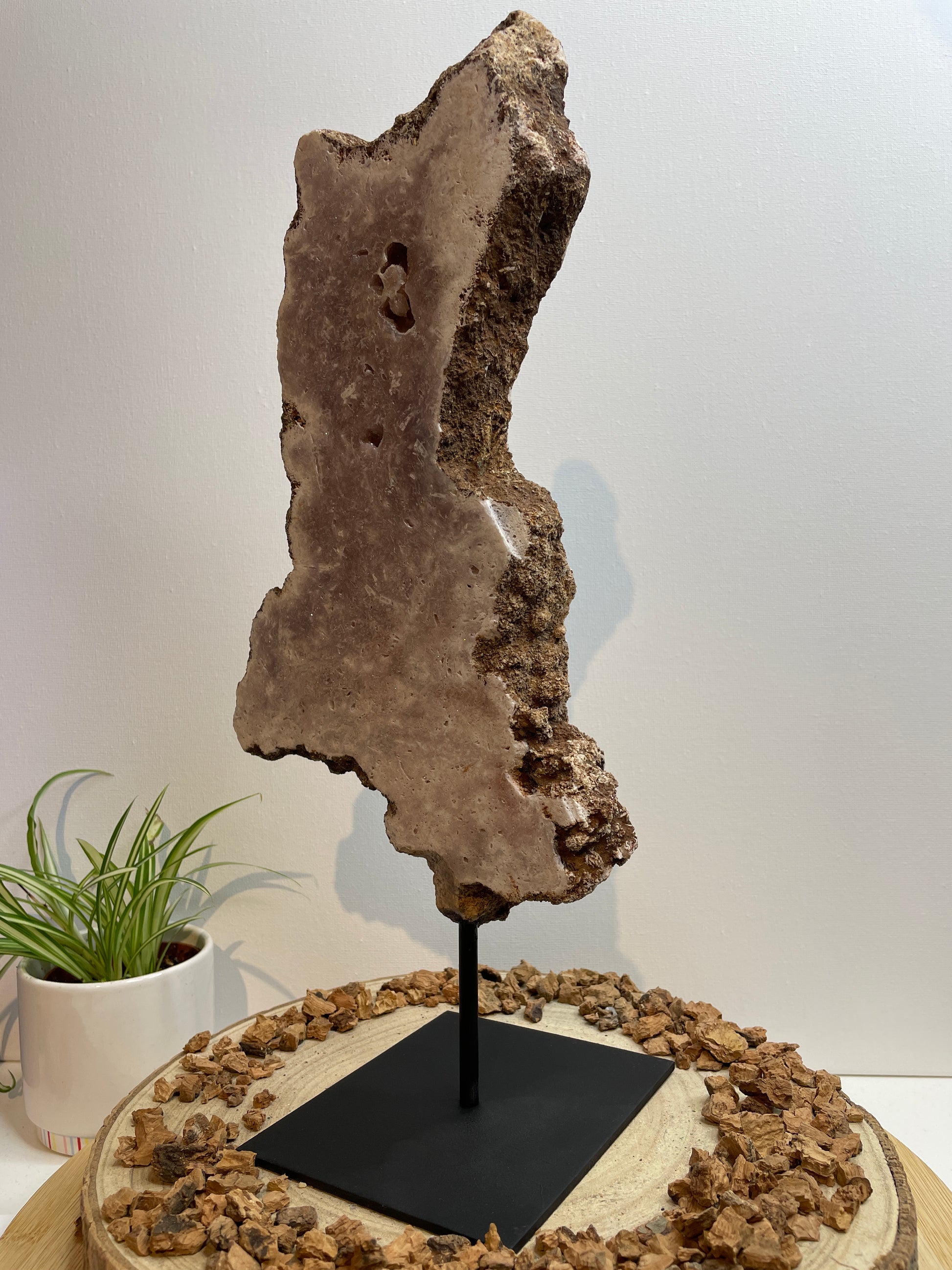 In dit stuk zitten prachtige holtes met kleine druzy kristallen die subtiel fonkelen in het licht. Dat maakt haar niet alleen energetisch bijzonder, maar ook een echte blikvanger, een prachtig kunstwerk van de natuur.