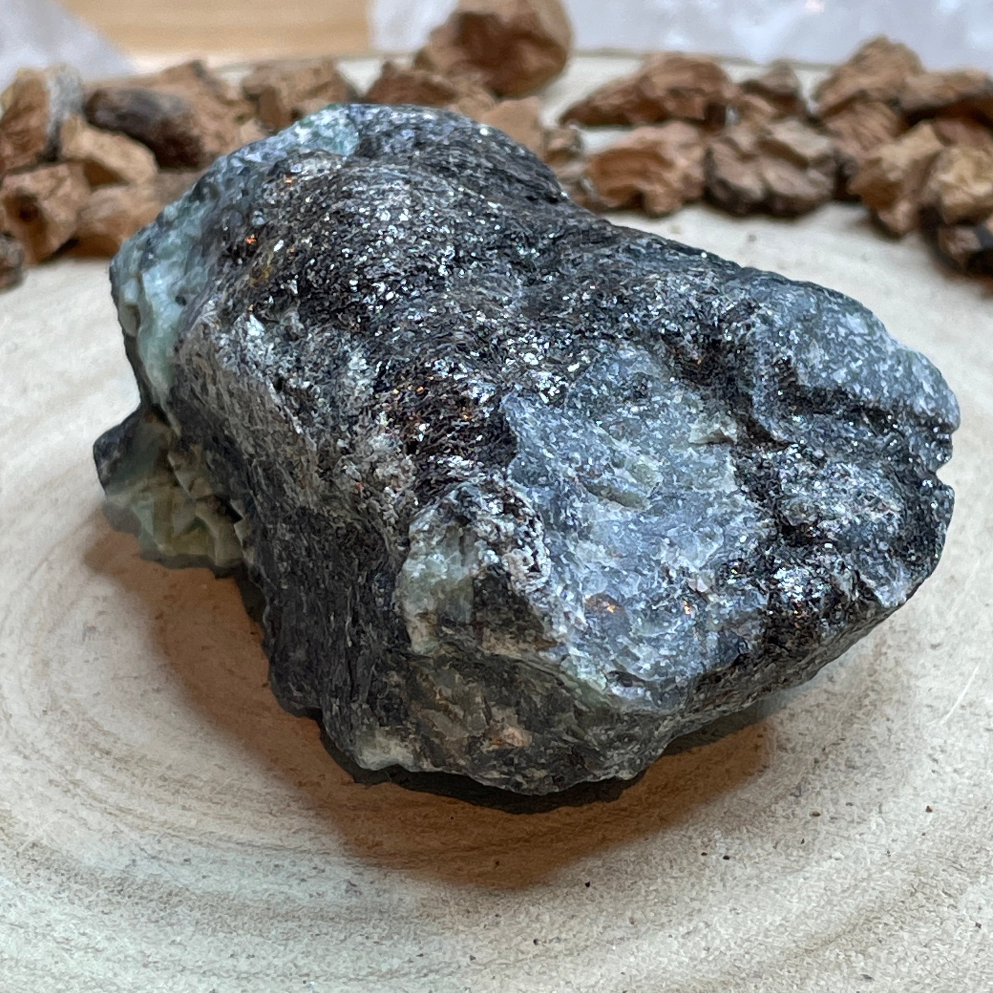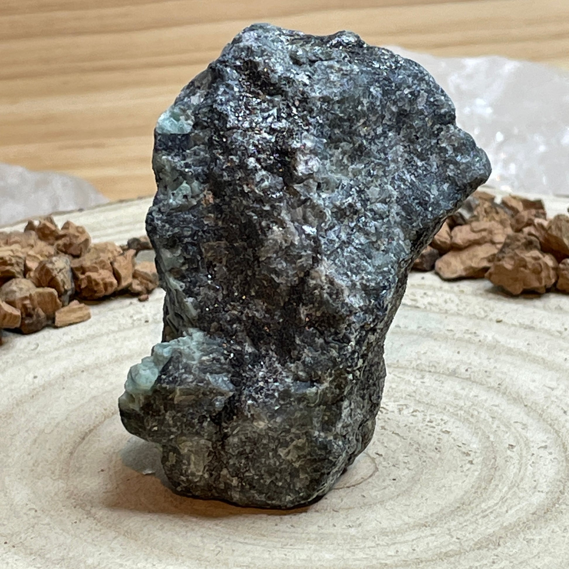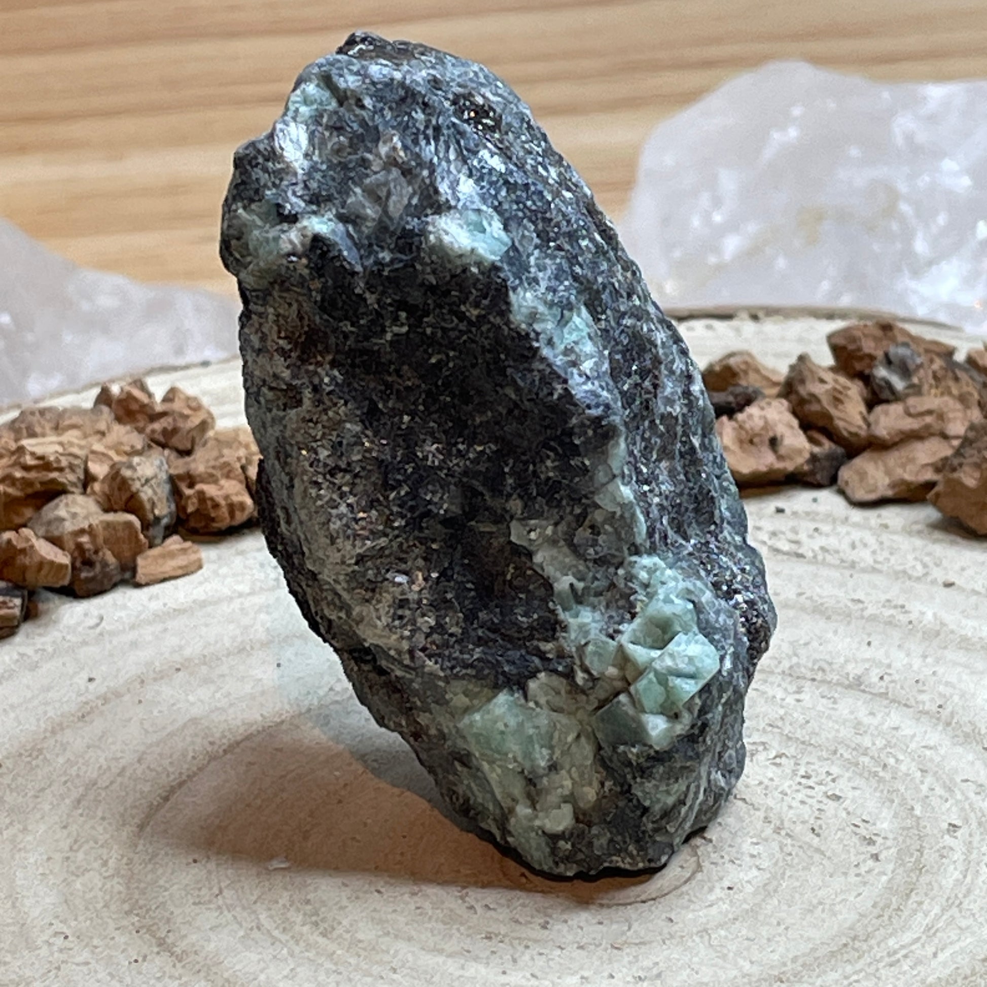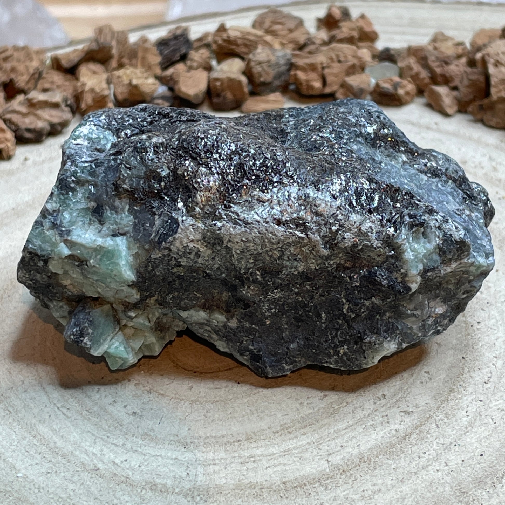 Smaragd in Biotiet is een bijzondere en krachtige combinatie van stenen. De groene smaragd staat symbool voor liefde, groei en vernieuwing, terwijl de zwarte biotiet zorgt voor aarding en bescherming. Samen brengen ze een mooie balans tussen hart en hoofd: ze openen je voor liefde en nieuwe inzichten, terwijl je stevig met beide voeten op de grond blijft staan.